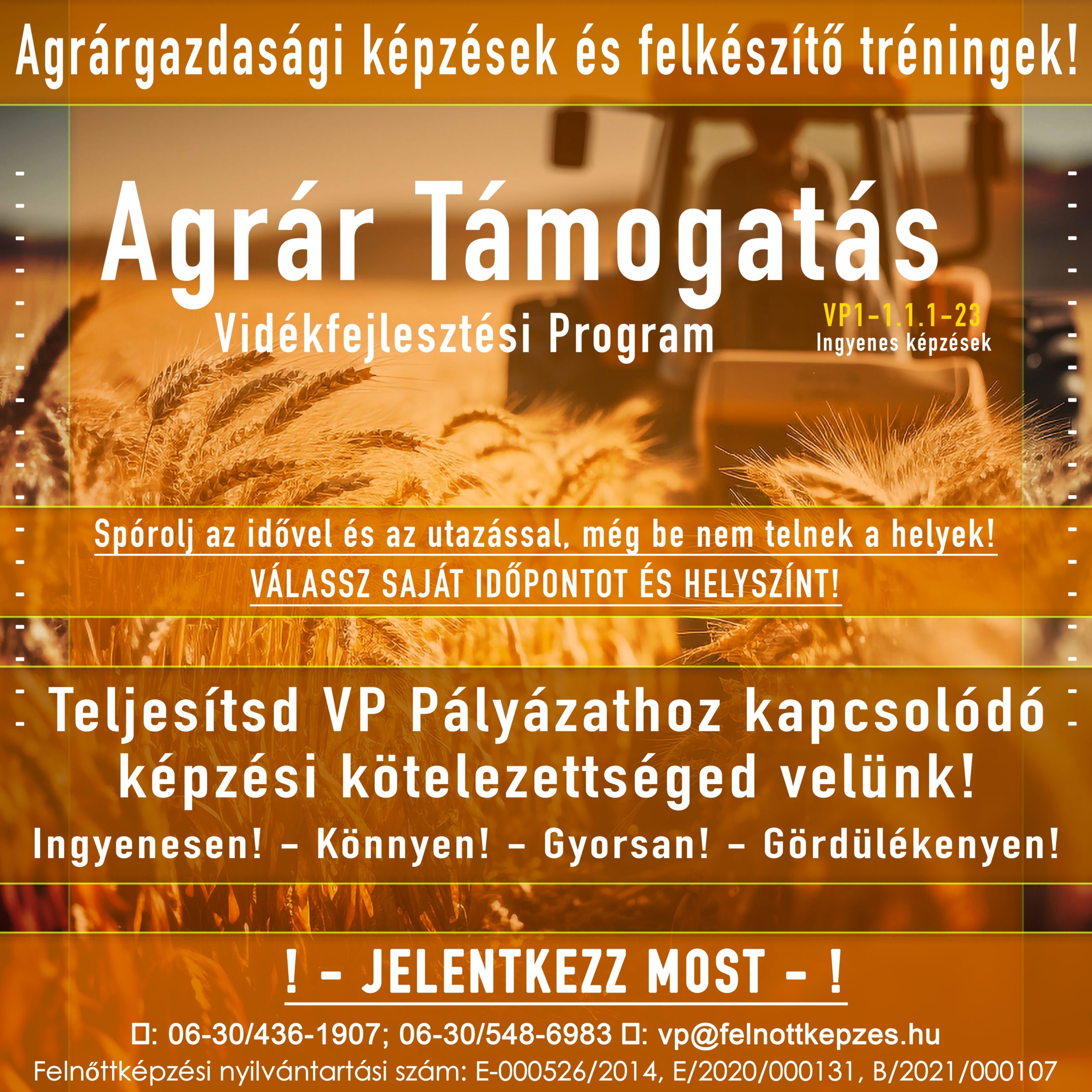 Hivatalos tájékoztatás Agrárgazdasági képzések és felkészítő tréningek című, VP1-1.1.1-23 kódszámú felhívás alapján a program a „KÉPZÉSRE KÖTELEZETTEK” részére.