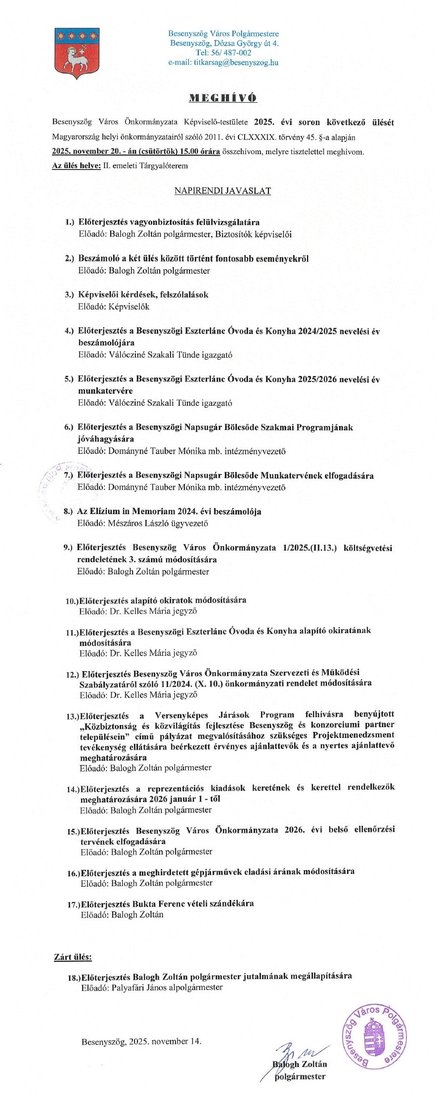 Meghívó Posted on 2025.11.17.2025.11.17. By besenyszog Meghívó4. napirendi pont5. napirendi pont6. napirendi pont7. napirendi pont9. napirendi pont10. napirendi pont11. napirendi pont12. napirendi pont13. napirendi pont14. napirendi pont15. napirendi pontRendelet mellékletek Hírek
