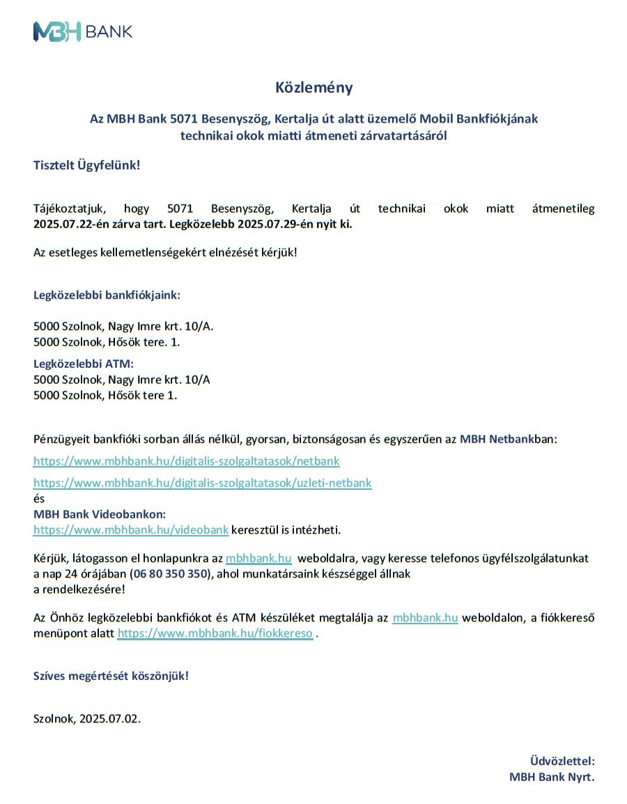 A településtervek tartalmáról, elkészítésének és elfogadásának rendjéről, valamint egyes településrendezési sajátos jogintézményekről szóló 419/2021. (VII. 15.) Korm. rendelet 75. §-ában, továbbá Besenyszög Város Önkormányzat Képviselő-testületének a partnerségi egyeztetés szabályairól szóló 10/2018.(V. 31.) önkormányzati rendeletében megállapított előírásoknak megfelelően ezúton tájékoztatom az érintetteket arról, hogy Besenyszög Város Önkormányzat Képviselő-testülete Besenyszög város településrendezési eszközeinek módosítását határozta el.