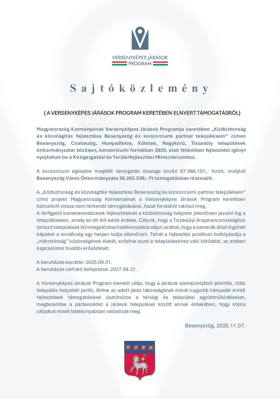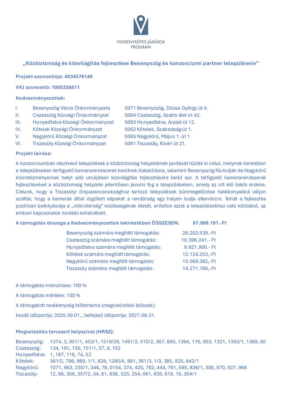 Közbiztonság és közvilágítás fejlesztése Besenyszög és konzorciumi partner településein