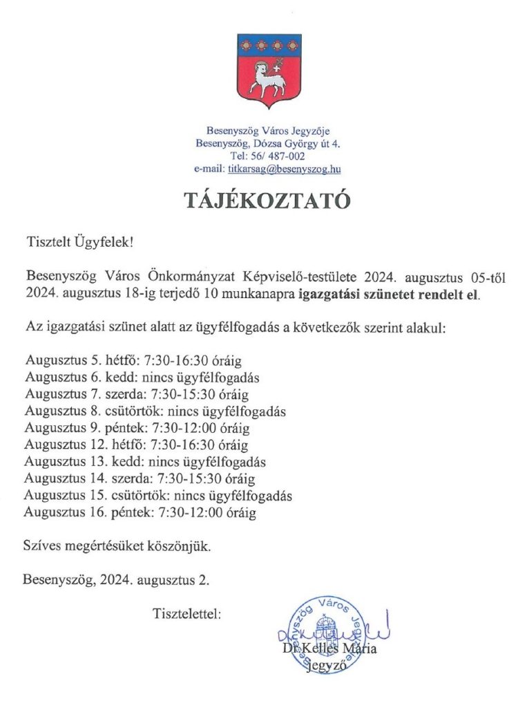 Megrendülten tudatjuk, hogy Lovász Imre, volt Besenyszög Város Önkormányzat képviselője (2010-2019) 2024. augusztus 11-én, életének 65. évében tragikus hirtelenséggel elhunyt. Tájékoztatjuk a lakosságot, hogy temetésére 2024. augusztus 27-én 9:30-kor kerül sor Besenyszög lenti temetőjében. Besenyszög Város Önkormányzata osztozik a család fájdalmában.
