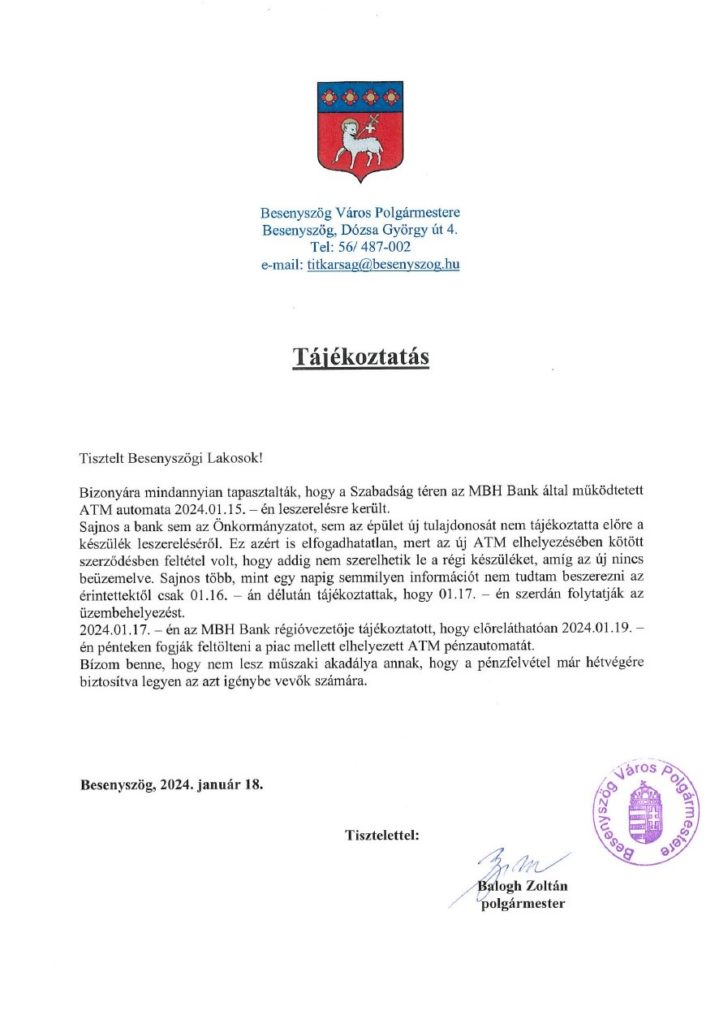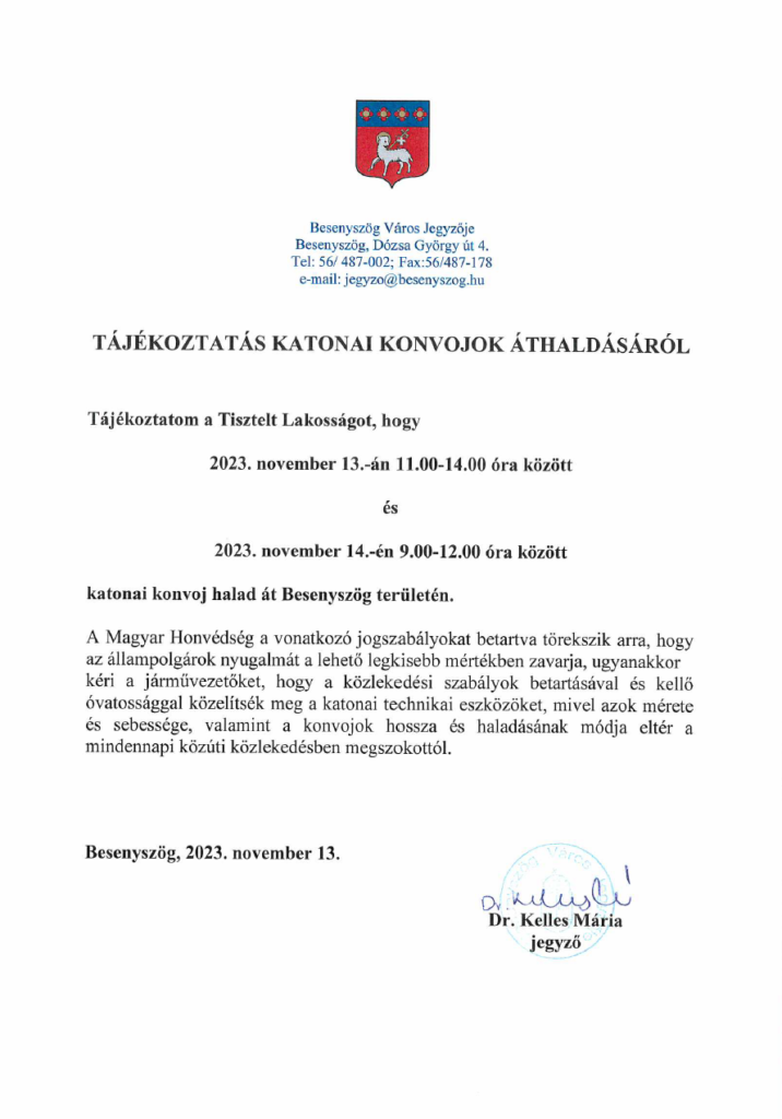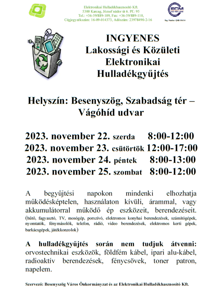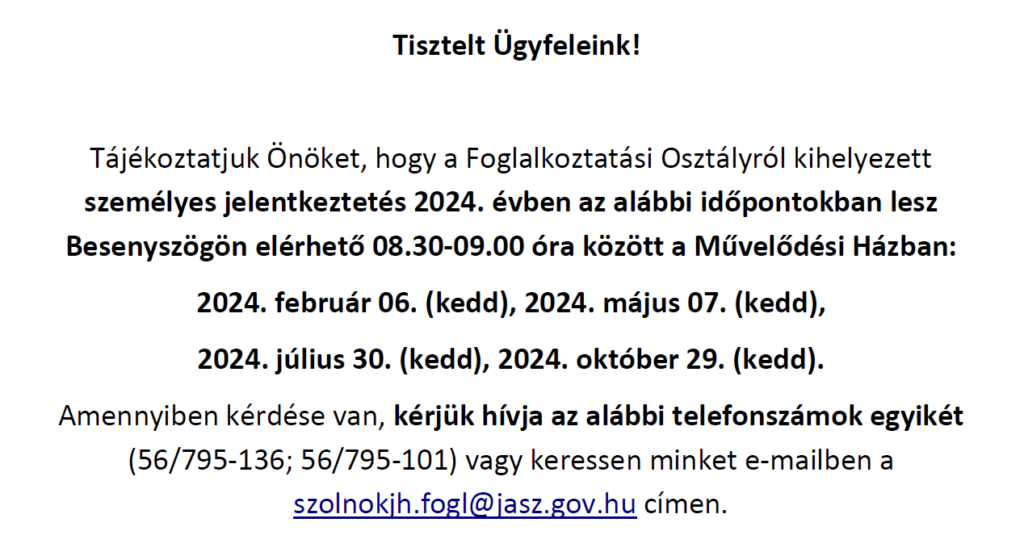 Értesítjük Önöket, hogy a besenyszögi Jászladányi úton lévő zöldhulladék lerakat november 30-tól szünetel! Kérjük a lakosságot, hogy a fenti határidőn túl zöldhulladékot ne szállítsanak a lerakó területére. Megértésüket köszönjük.