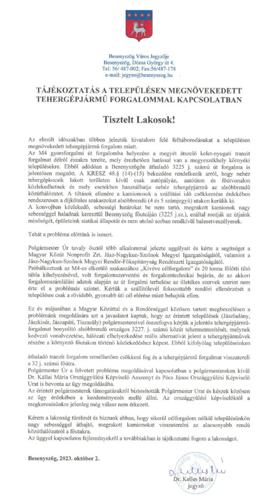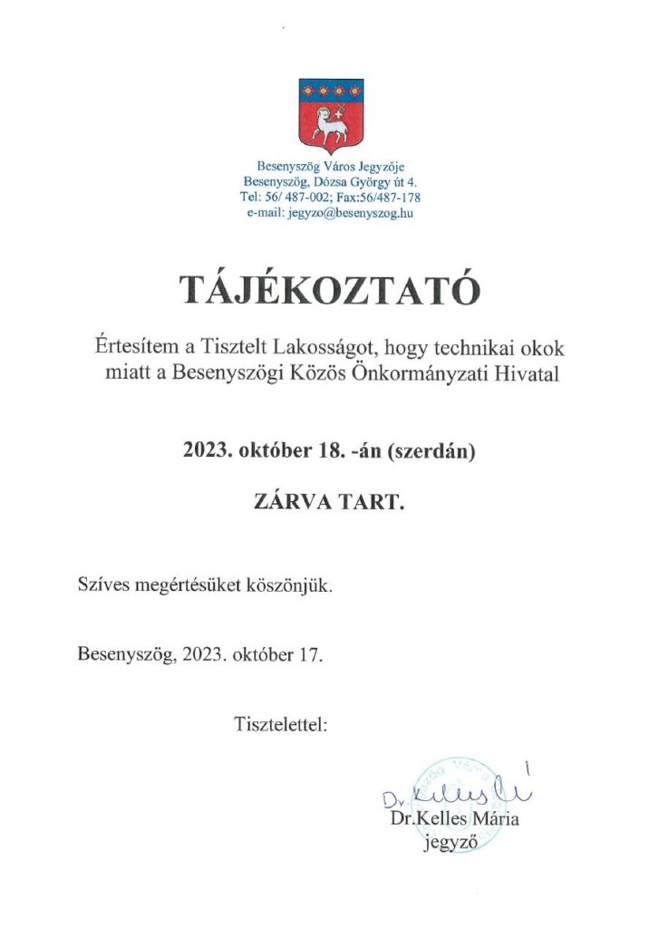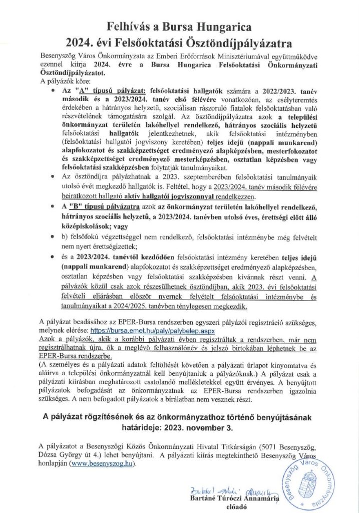 Besenyszög Város Önkormányzata ismételten pályázatot besenyszögi földrészletek haszonbérbe adására. A részletek a bejegyzés megnyitását követően tekinthetők meg.