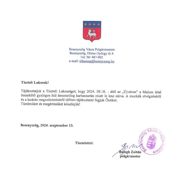 Az Opus Energetika tervezett üzemszünetet tart 2024.10.25-én 8:00 és 16:00 óra között Besenyszög külterületét érintve.